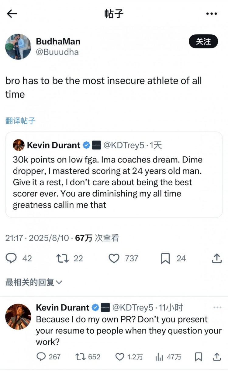 8月11日消息近日,火箭前锋杜兰特不断在社交媒体X上与球迷交流。